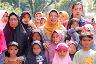 JUARE — Bunda Literasi Provinsi Banten Tinawati Andra Soni bersama komunitas Banten Ceria menyelenggarakan kegiatan mendongeng dalam rangka memperingati Hari Dongeng Nasional 2025. Kegiatan yang berlangsung di halaman Gedung Negara Provinsi Banten pada Sabtu (6/12/2025) ini diikuti oleh puluhan anak dengan suasana ceria dan edukatif.